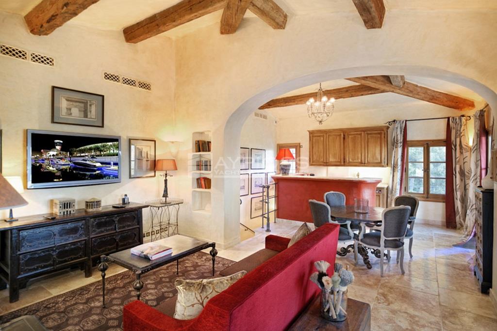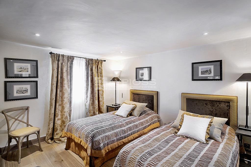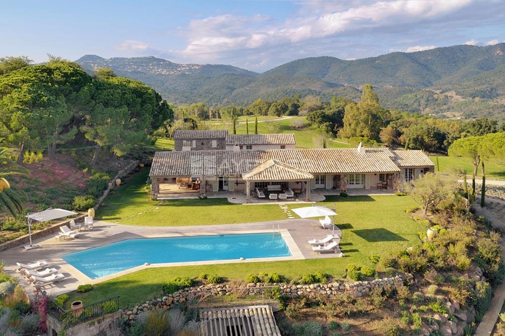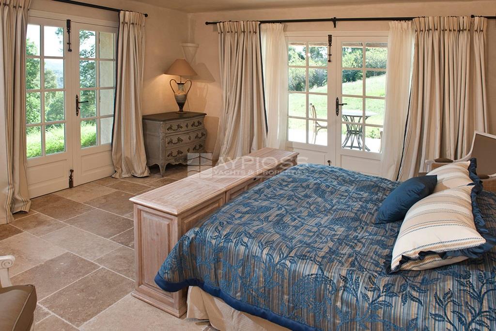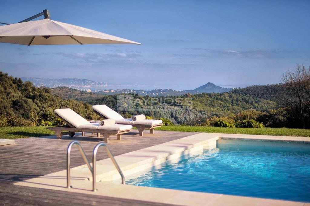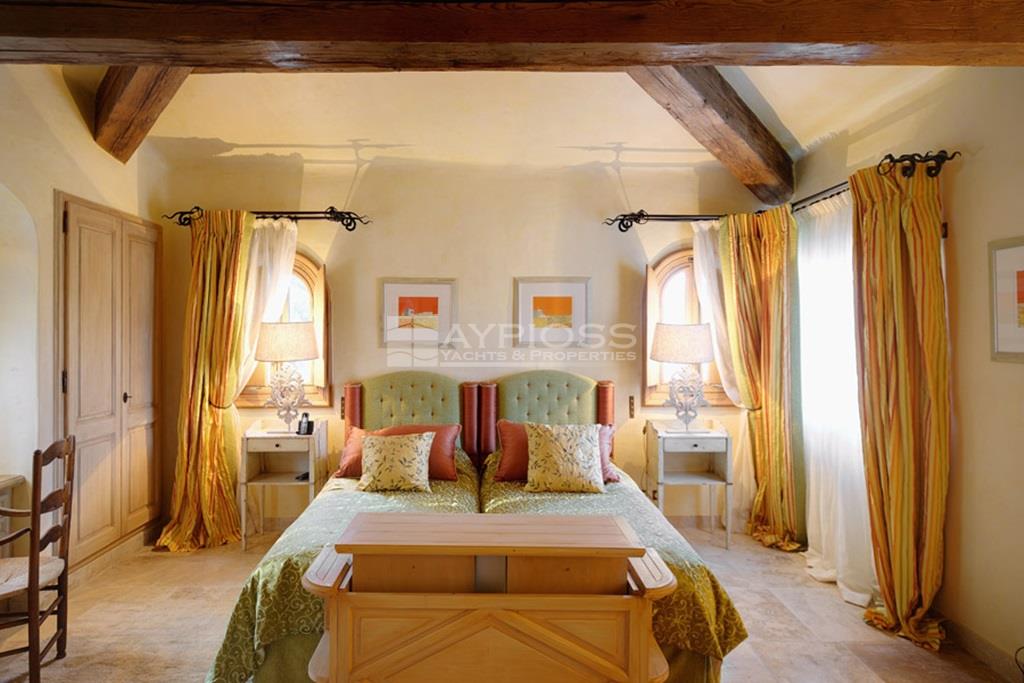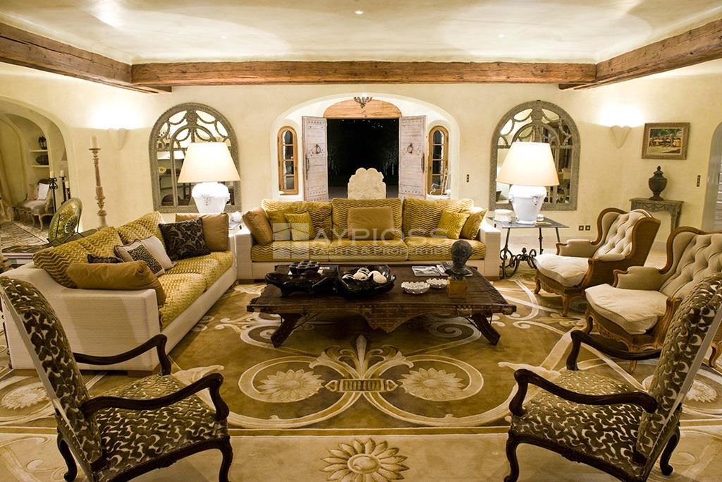 On a park of 30ha overlooking the bay of Cannes with panoramic views on the sea and the Esterel with the Alps in the background, this exceptional private property comprising 3 independent villas with luxury equipment and decoration welcomes comfortably up to 34 guests. Each villa has its own private heated swimming pool and the domain comprise a tennis, a 9.000m2 lake, 6ha of landscaped gardens and several pedestrian circuits across the property. The main villa offers several reception rooms opening onto large exterior covered terraces, an equipped office, a large kitchen with pantry, a wellness center with spa, steam room, sauna and fitness equipment, a disco with saloon, bar and pool table, 4 double suites and a master apartment on the upper level with bedroom, saloon, dressing, bathroom and private terrace with sea view, as well as 2 staff bedrooms. The second villa is also set with saloon, dining room, a large kitchen and 5 bedrooms with en-suite bathroom, 3 being in an independent aisle with a little saloon and kitchenette and a staff bedroom. The 3rd villa offers living rooms and office, a large equipped kitchen and 7 double or twin bedrooms with en-suite bathroom and a staff bedroom; Air-conditioning and audio-video equipment throughout the 3 villas; Caretaker in separated accommodations;