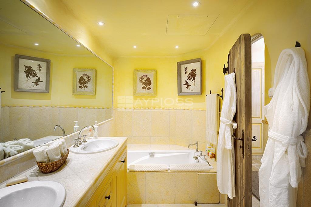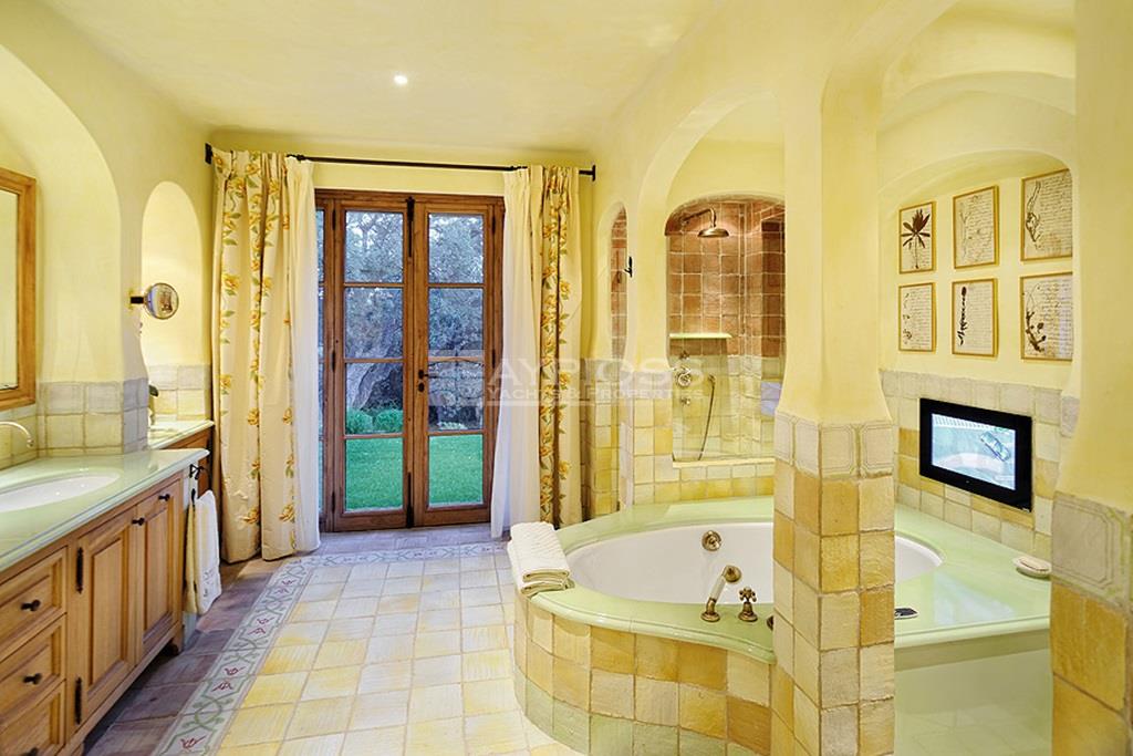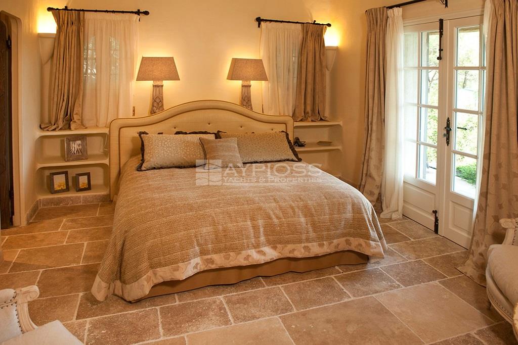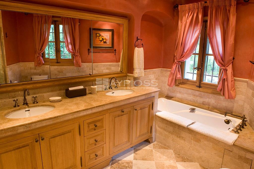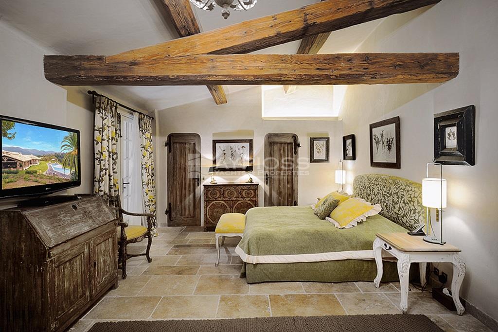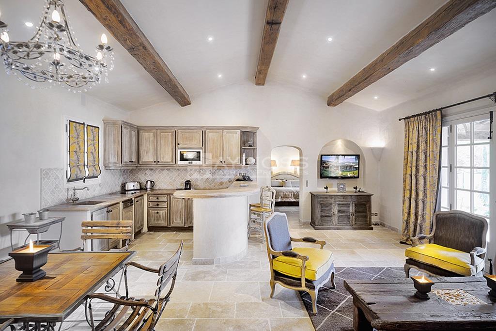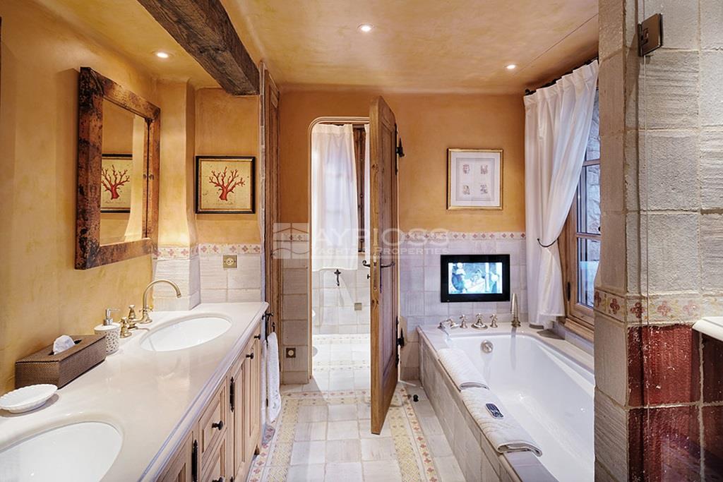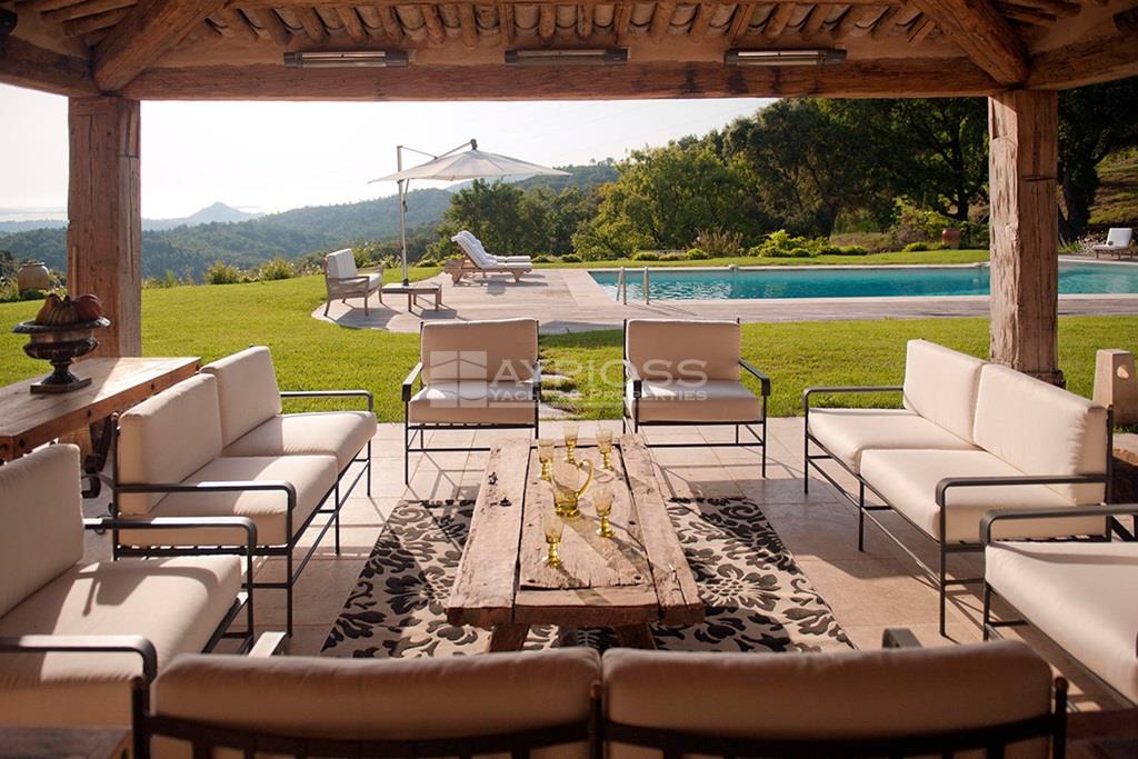 On a park of 30ha overlooking the bay of Cannes with panoramic views on the sea and the Esterel with the Alps in the background, this exceptional private property comprising 3 independent villas with luxury equipment and decoration welcomes comfortably up to 34 guests. Each villa has its own private heated swimming pool and the domain comprise a tennis, a 9.000m2 lake, 6ha of landscaped gardens and several pedestrian circuits across the property. The main villa offers several reception rooms opening onto large exterior covered terraces, an equipped office, a large kitchen with pantry, a wellness center with spa, steam room, sauna and fitness equipment, a disco with saloon, bar and pool table, 4 double suites and a master apartment on the upper level with bedroom, saloon, dressing, bathroom and private terrace with sea view, as well as 2 staff bedrooms. The second villa is also set with saloon, dining room, a large kitchen and 5 bedrooms with en-suite bathroom, 3 being in an independent aisle with a little saloon and kitchenette and a staff bedroom. The 3rd villa offers living rooms and office, a large equipped kitchen and 7 double or twin bedrooms with en-suite bathroom and a staff bedroom; Air-conditioning and audio-video equipment throughout the 3 villas; Caretaker in separated accommodations;