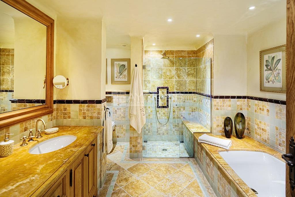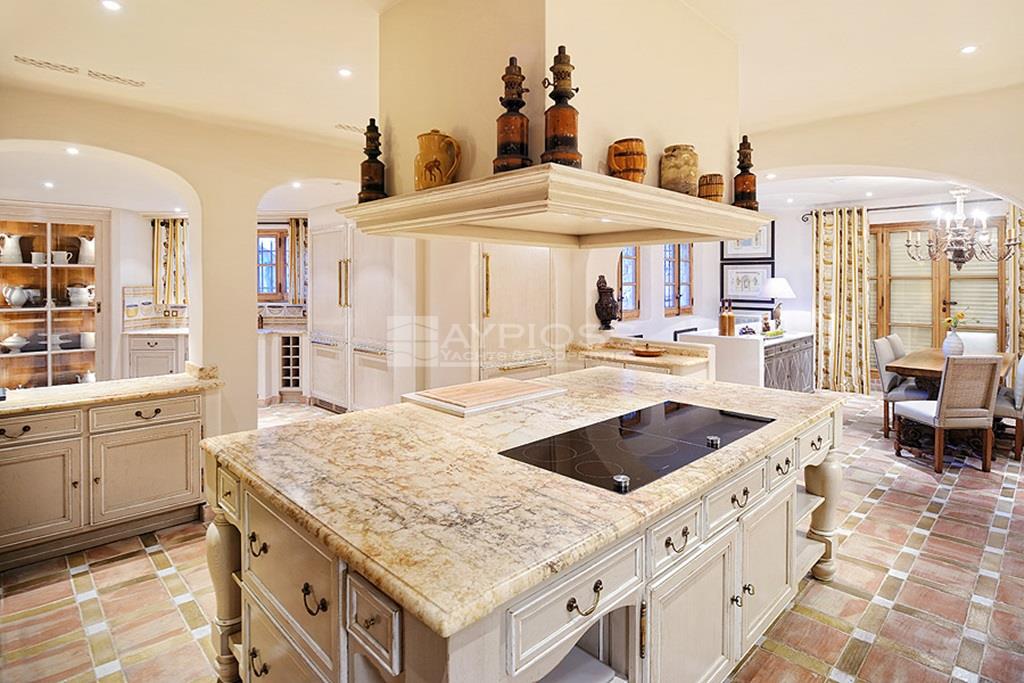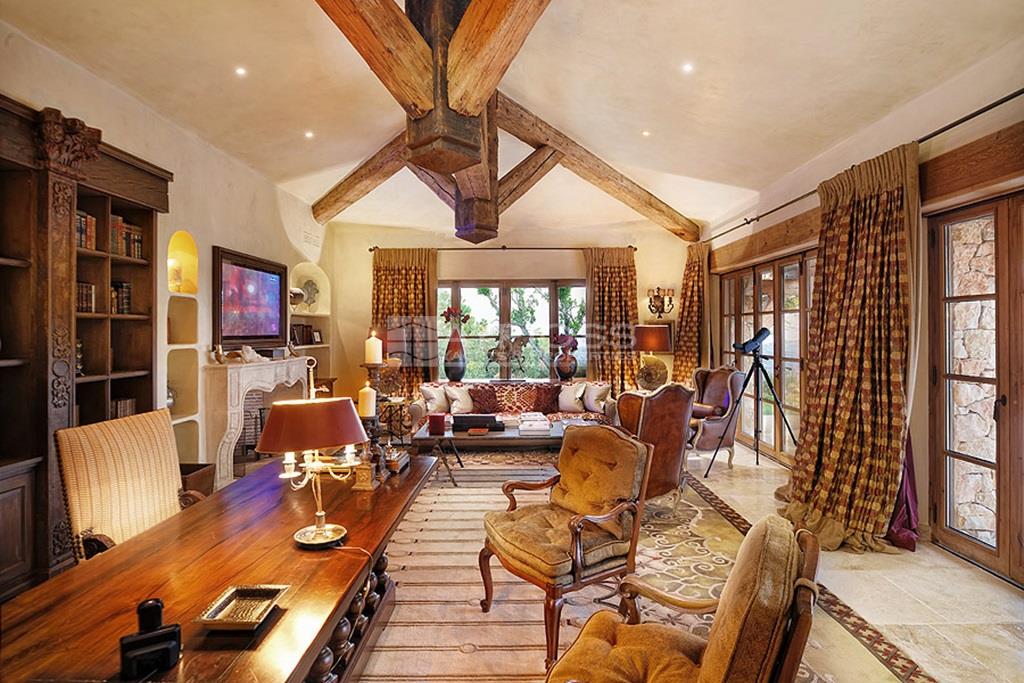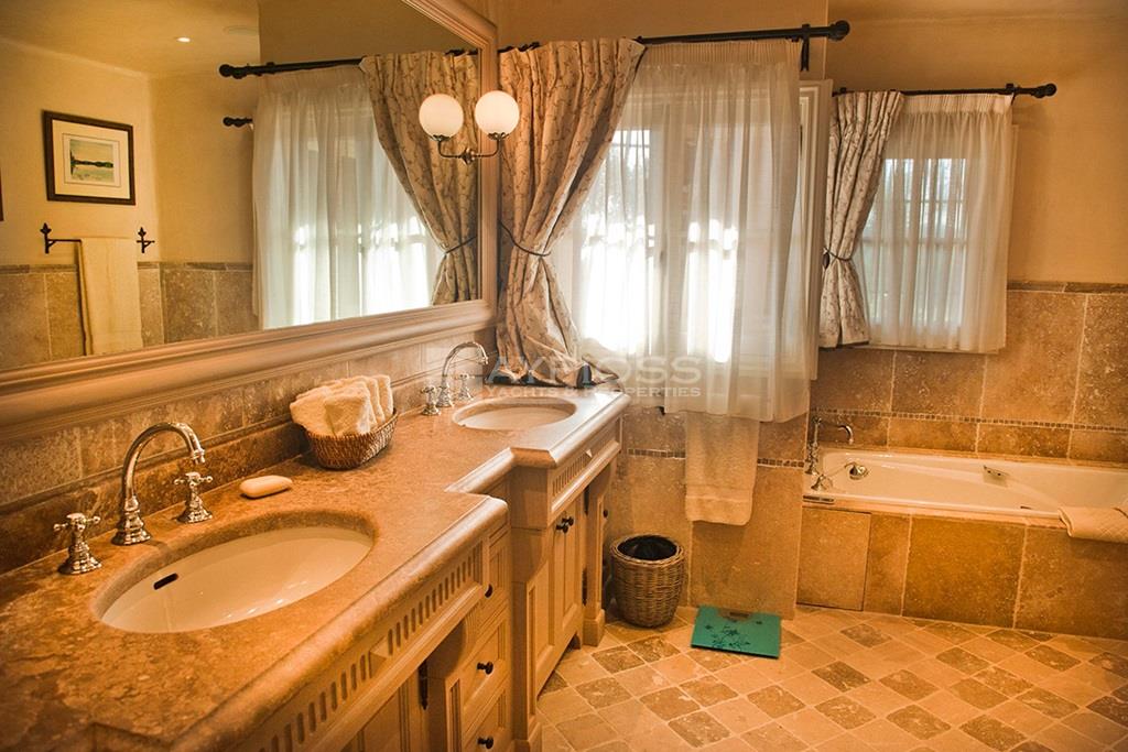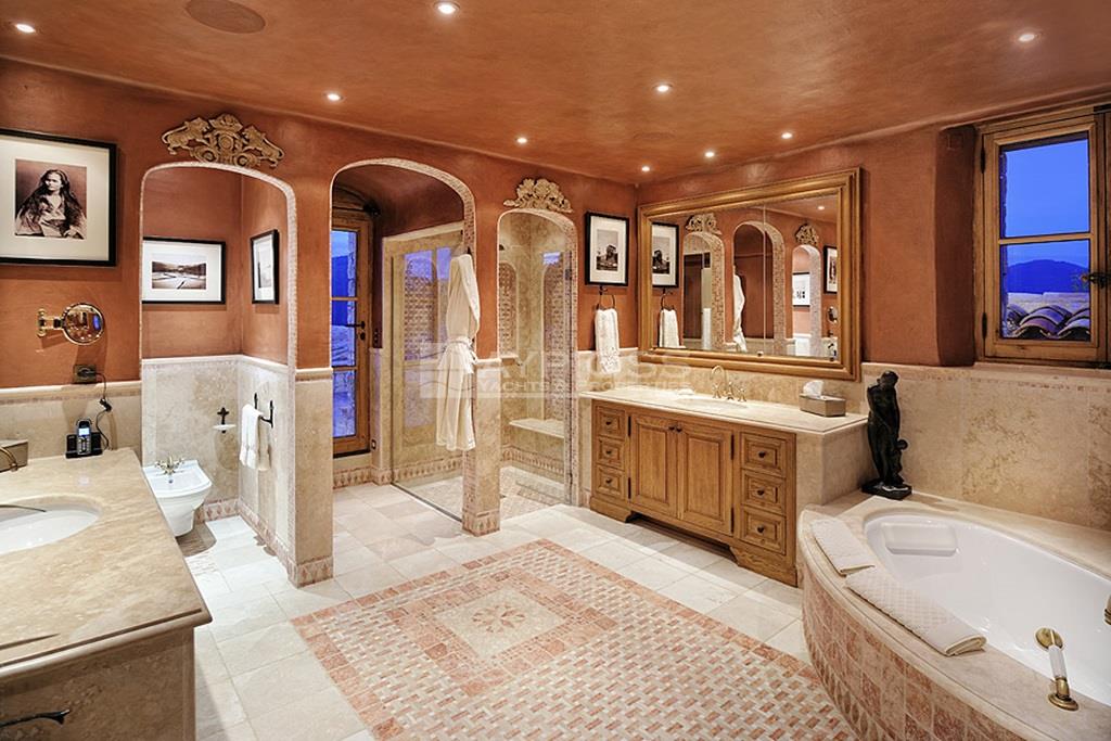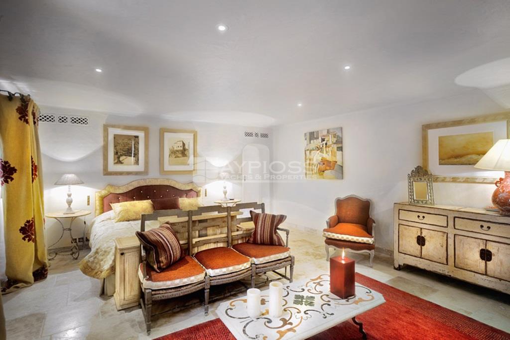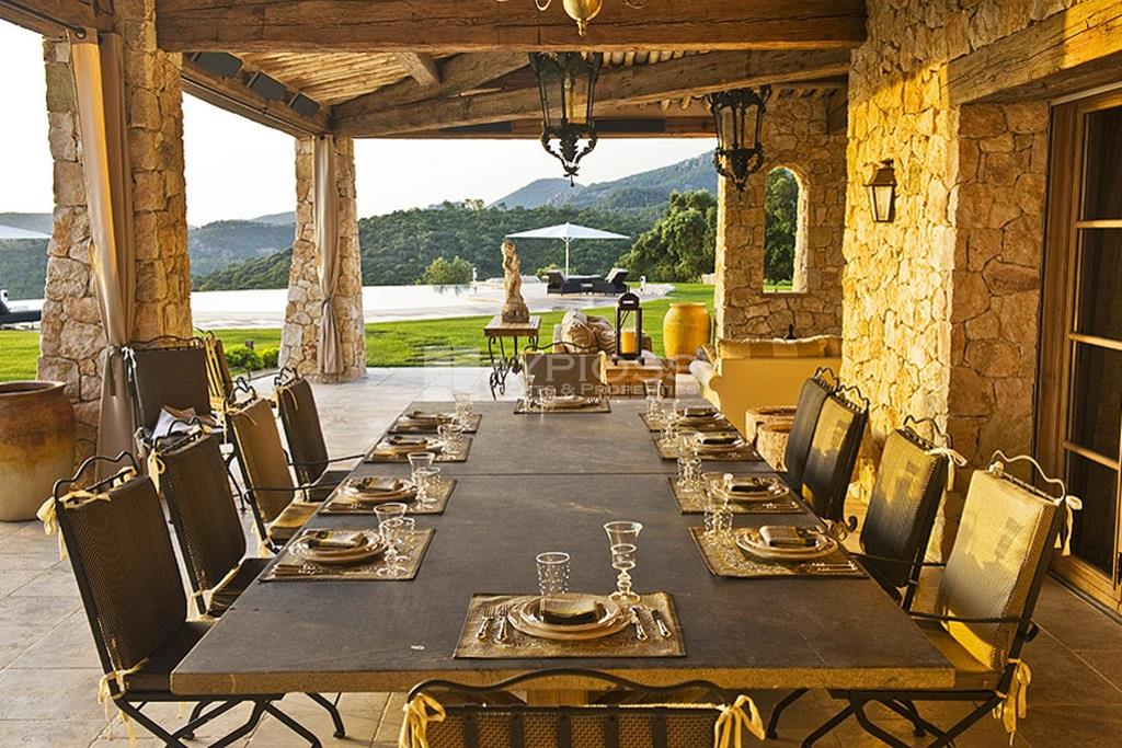 On a park of 30ha overlooking the bay of Cannes with panoramic views on the sea and the Esterel with the Alps in the background, this exceptional private property comprising 3 independent villas with luxury equipment and decoration welcomes comfortably up to 34 guests. Each villa has its own private heated swimming pool and the domain comprise a tennis, a 9.000m2 lake, 6ha of landscaped gardens and several pedestrian circuits across the property. The main villa offers several reception rooms opening onto large exterior covered terraces, an equipped office, a large kitchen with pantry, a wellness center with spa, steam room, sauna and fitness equipment, a disco with saloon, bar and pool table, 4 double suites and a master apartment on the upper level with bedroom, saloon, dressing, bathroom and private terrace with sea view, as well as 2 staff bedrooms. The second villa is also set with saloon, dining room, a large kitchen and 5 bedrooms with en-suite bathroom, 3 being in an independent aisle with a little saloon and kitchenette and a staff bedroom. The 3rd villa offers living rooms and office, a large equipped kitchen and 7 double or twin bedrooms with en-suite bathroom and a staff bedroom; Air-conditioning and audio-video equipment throughout the 3 villas; Caretaker in separated accommodations;